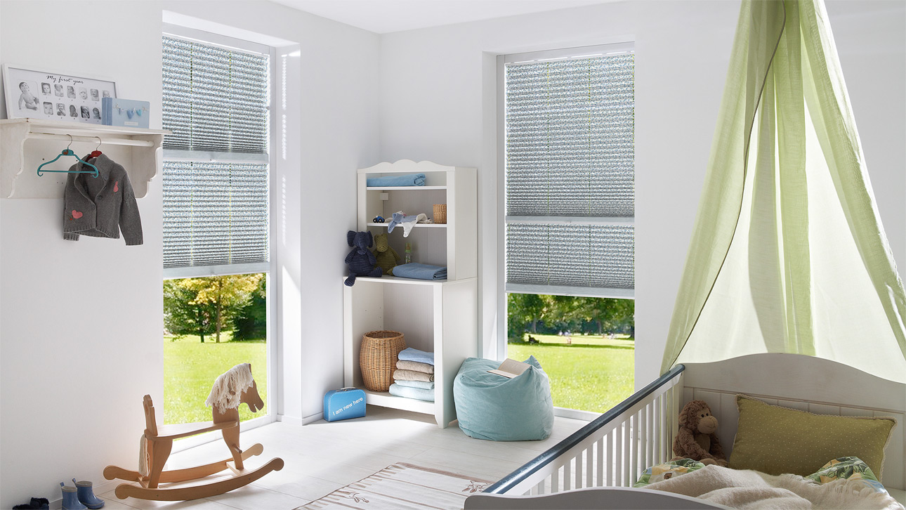 kindersicher verspannte Plissees, gemäß EN 13120 für Kinderzimmer geeignet